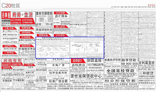 Chongqing Green Technology Development Co., Ltd. in the "Chongqing business daily" published in the advertisement "Chongqing Green Technology Development Co., Ltd. to the public to sell two patents and seek cooperation partners."