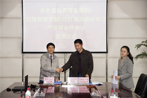 Through friendly negotiation meeting between the two sides, Chongqing economic construction (Group) Co. Ltd and Chongqing Green Technology Development Co. Ltd. and Chongqing real estate Career Academy, the spirit of "sincere cooperation, pragmatic, mutual benefit and common development" principle, to reach agreement on a research base for cooperation, project development and application of new technologies. Leaders on both sides have witnessed by all participants in the applause, the two sides signed a multi color temperature anti haze Internet plus remote intelligent control system and research cooperation agreement LED lighting project.