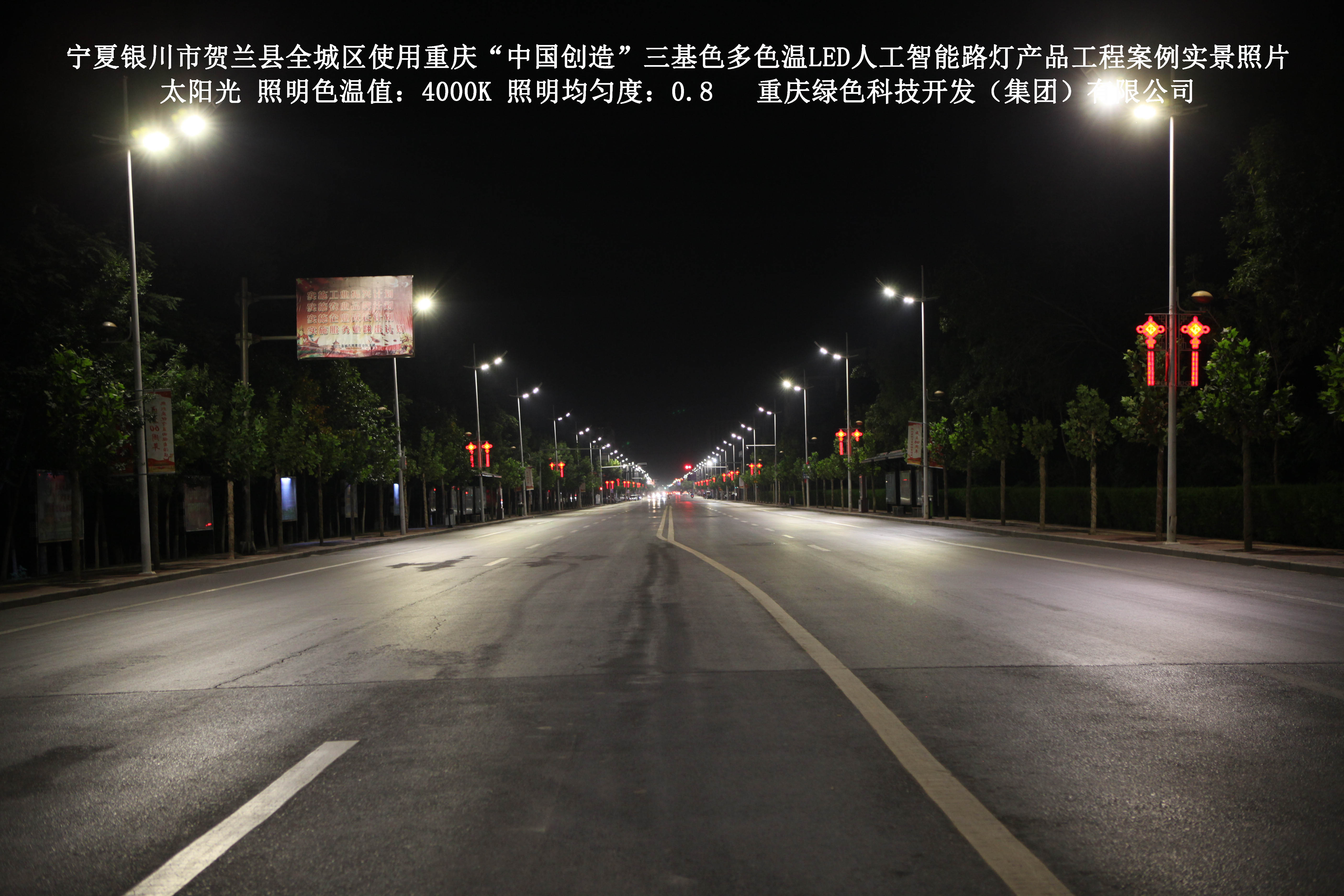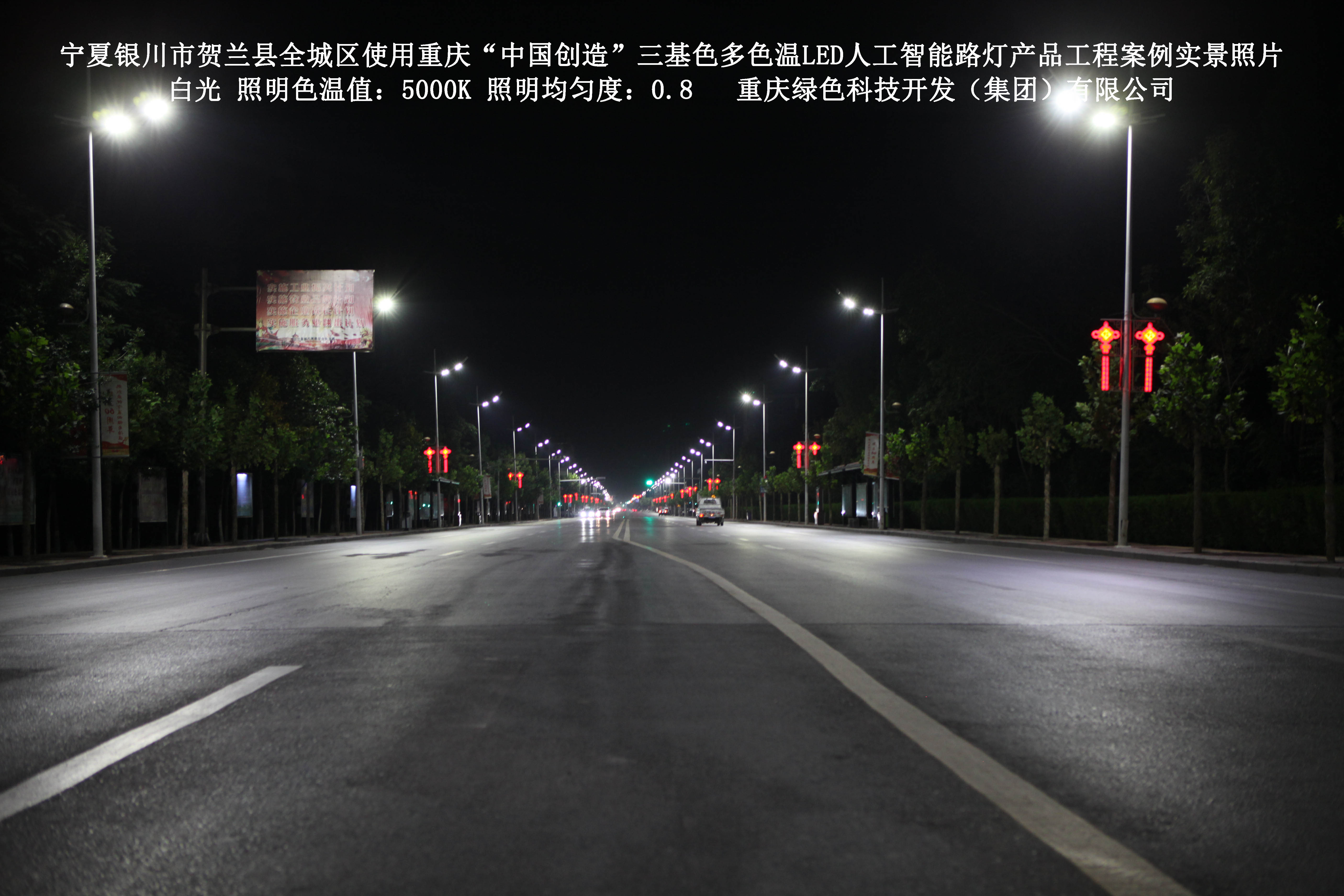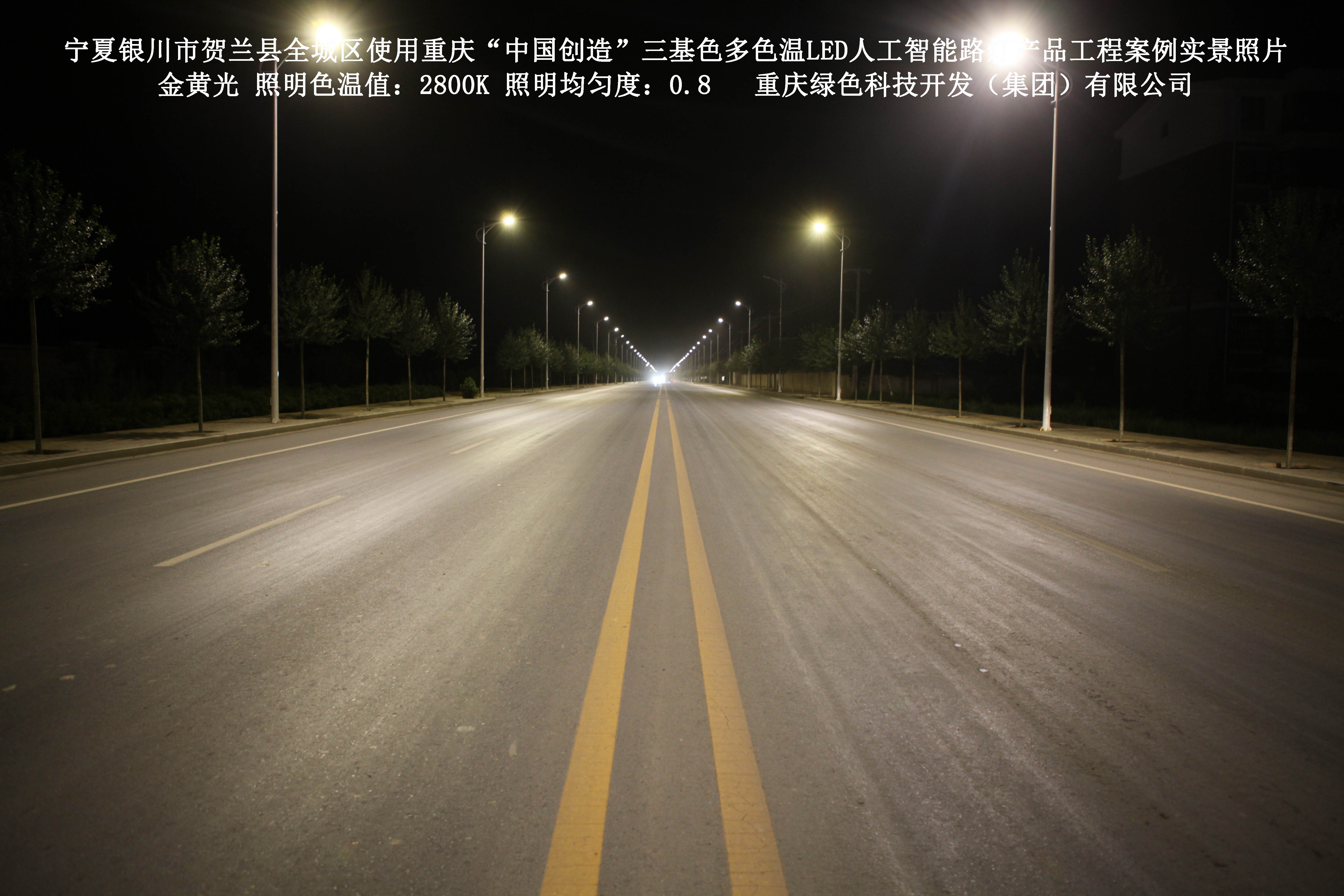 寧夏銀川市賀蘭縣全城區(qū)使用我司研造的重慶“中國(guó)創(chuàng)造”三基色多色溫