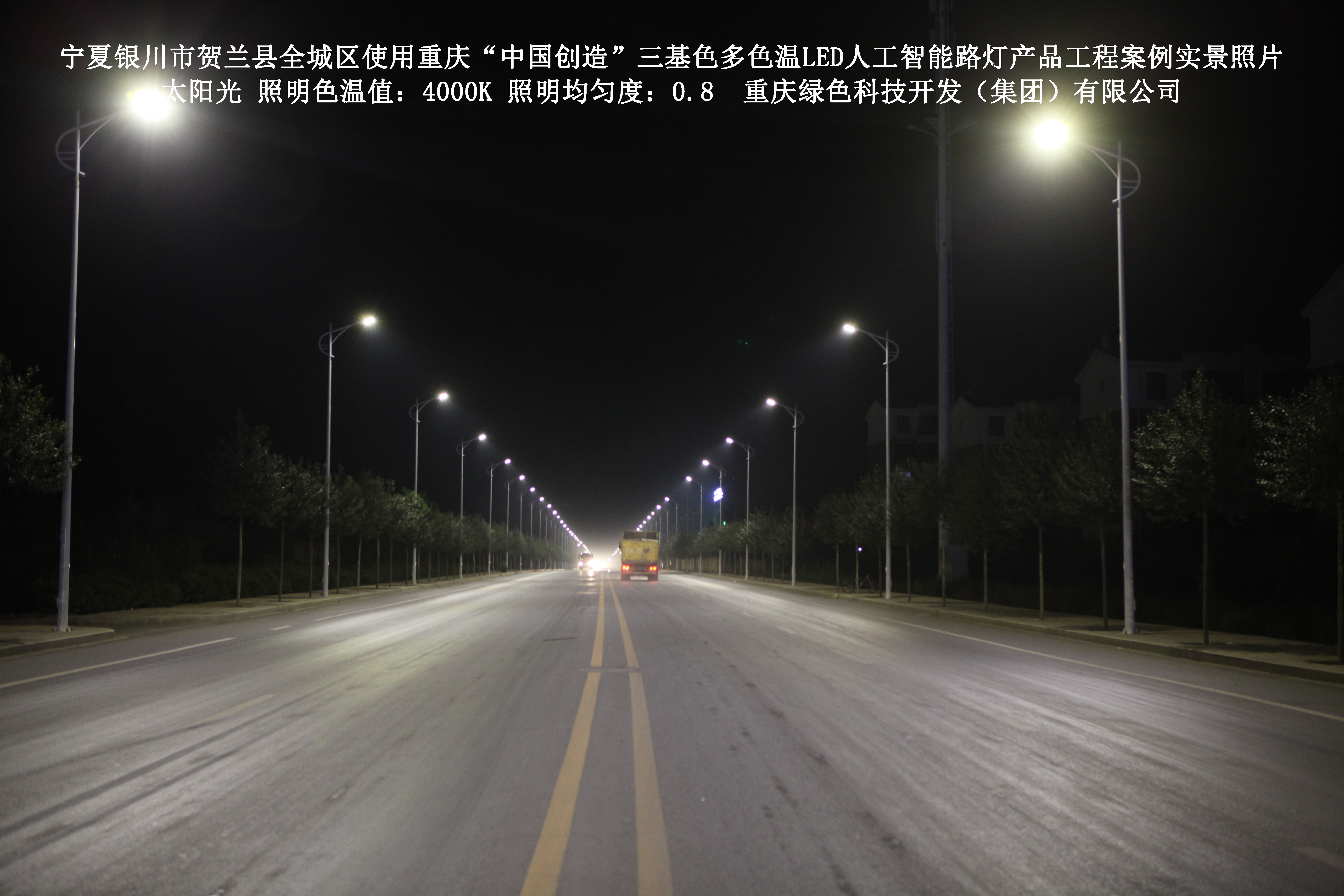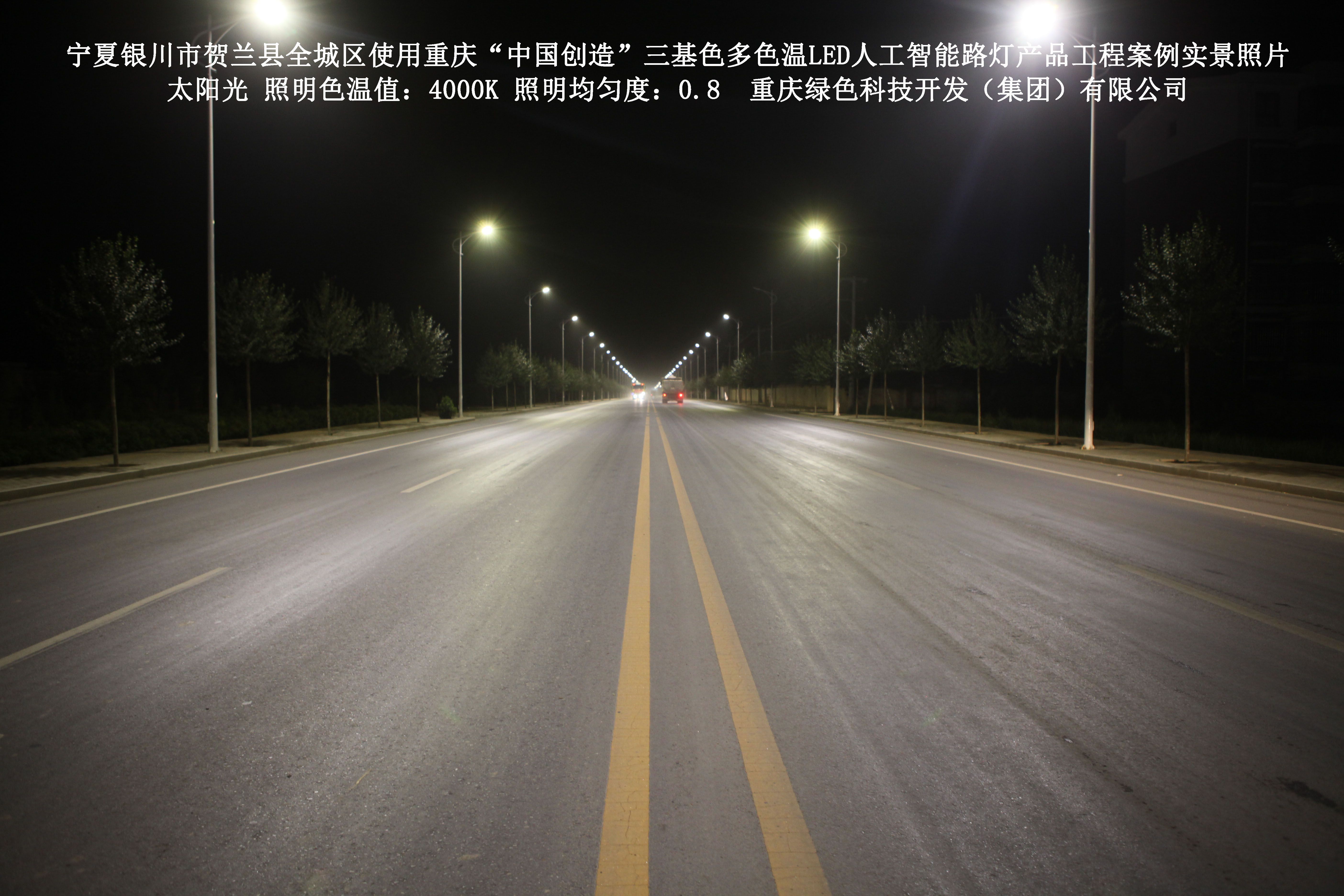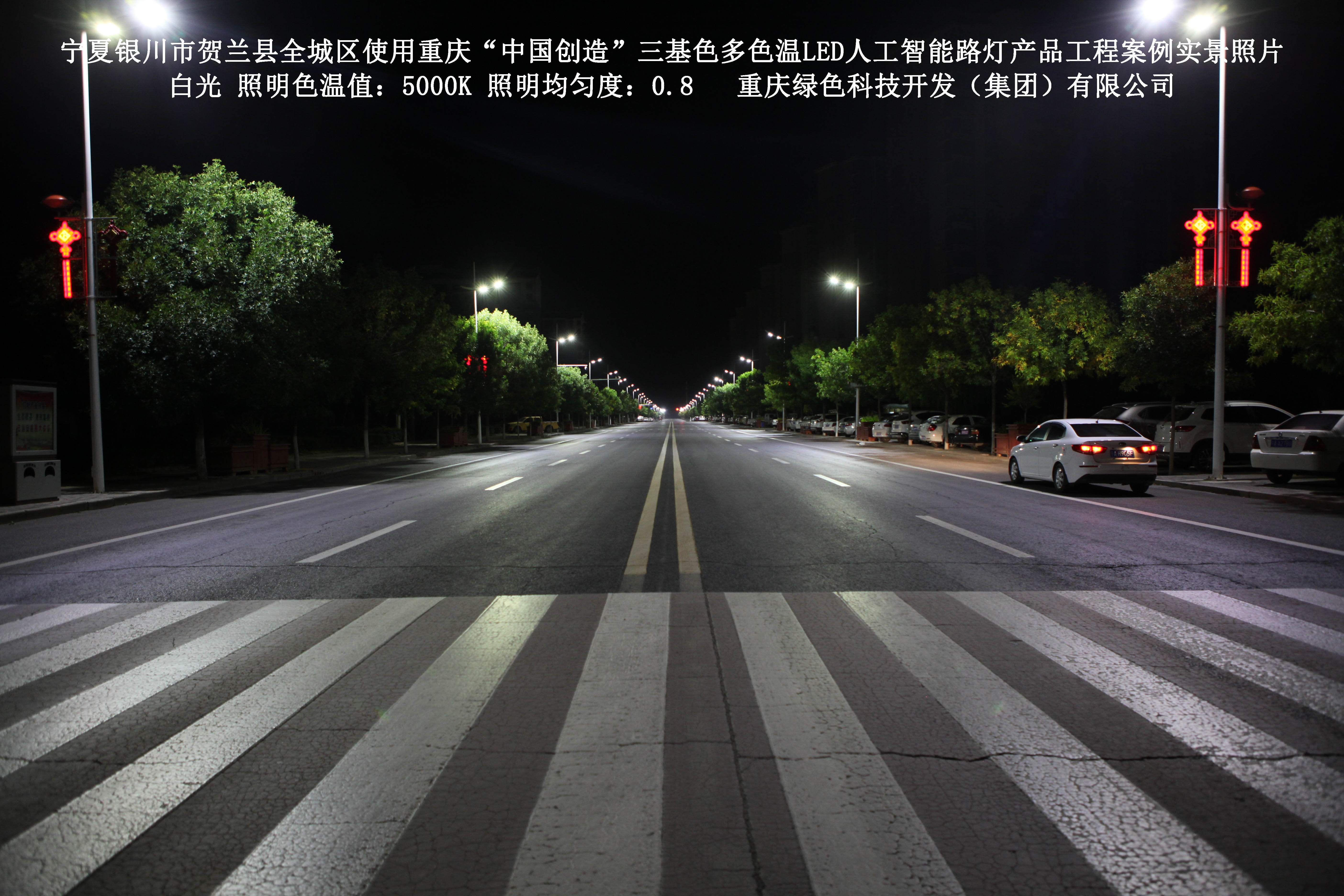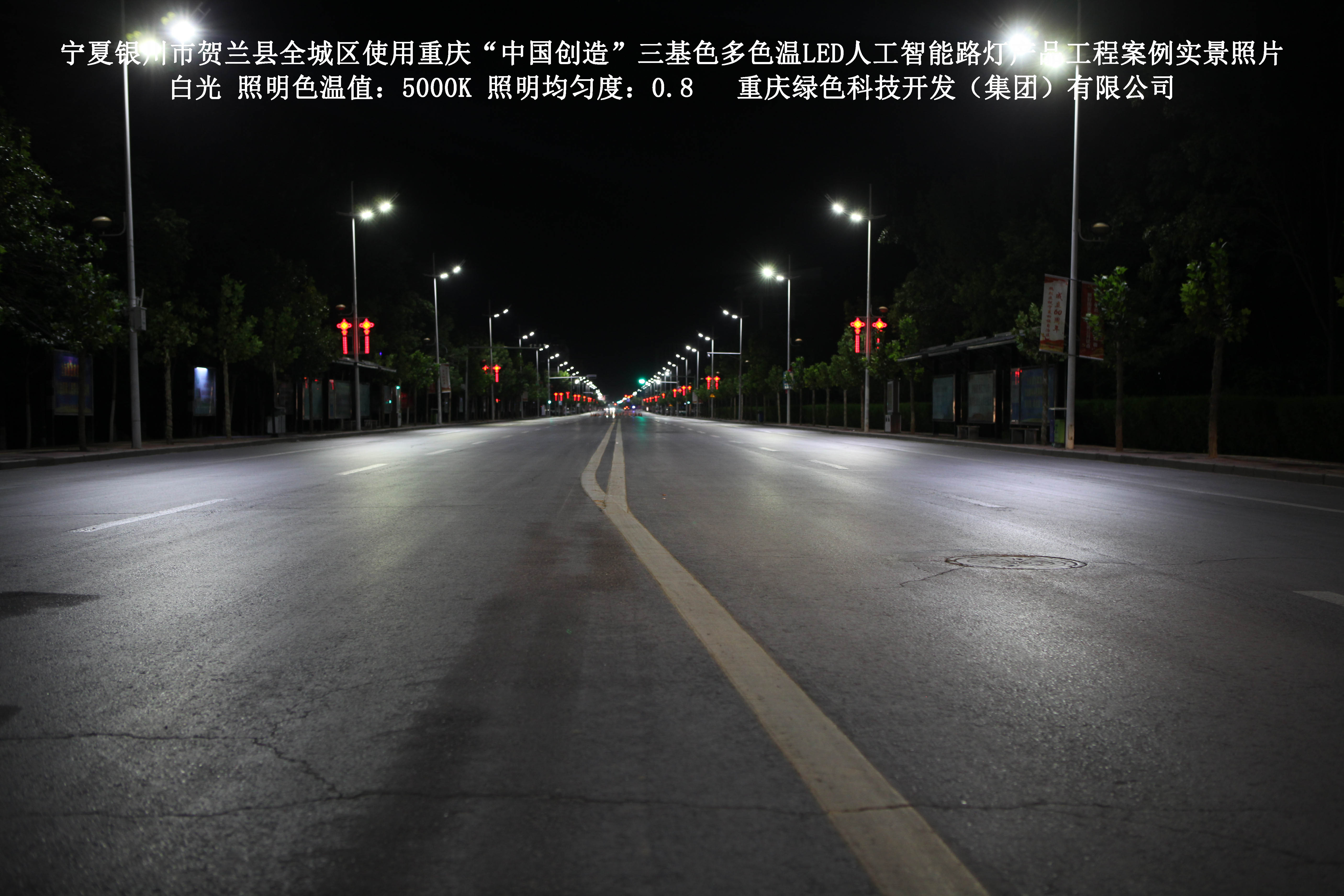 寧夏銀川市賀蘭縣全城區(qū)使用我司研造的重慶“中國(guó)創(chuàng)造”三基色多色溫